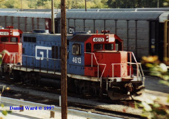 Starting in 1989, the Grand Trunk Western began a major rebuild project. This project resulted in 36 GP9r's; the only visable difference between the GP9 and the GP9r is these units all have a low front hood.